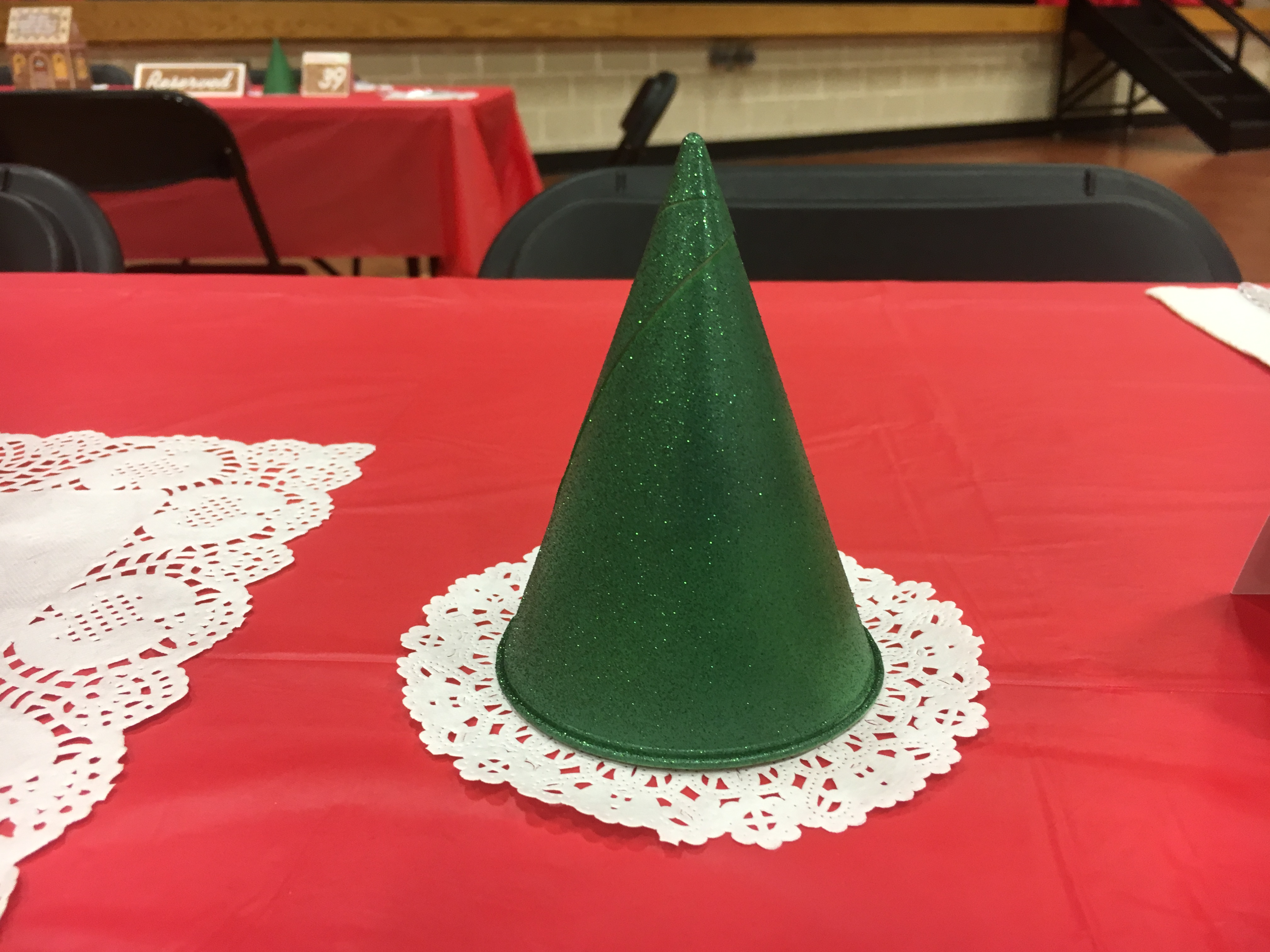 A paper tree as part of a centerpiece for a corporate holiday luncheon.